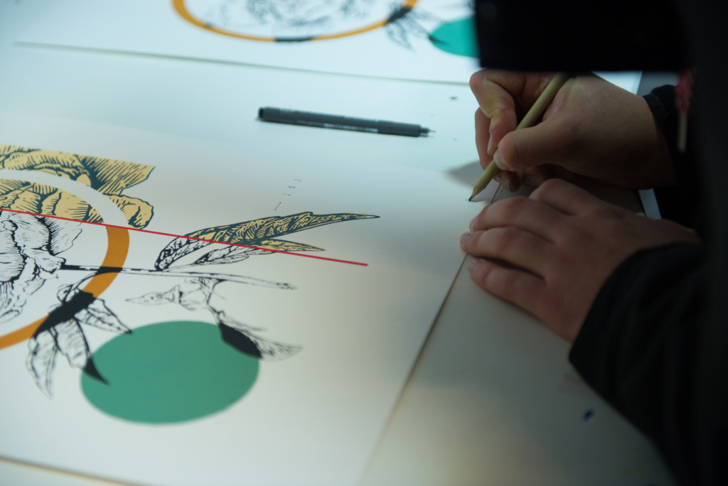 Diciamo che è nata per una serie di circostanze, esigenze e occasioni: il fatto di affacciarmi ad un ambiente come quello dell’arte urbana, la street art o come la si vuol chiamare, in un certo senso già formato – quindi senza un percorso come possono avere tanti altri artisti che passano attraverso i graffiti o mondi simili – mi ha permesso di ricercare un’originalità e un mio stile senza per forza tentare di creare un passato che non mi apparteneva, quindi senza dovermi inventare una tag sul momento per buttarmi in quel mondo in una maniera finta, arrogante… Questo è il motivo che mi ha spinto a cercare una via alternativa per avere una leggibilità, una firma, una particolarità che fosse mia, pur non essendo una tag. È stata un po’ una sorta di astrazione di una tag: la pianta e l’elemento chimico sono la firma, ma in forma concettuale. L’insistere su una ripetizione, come può essere la linea rossa o la parte centrale circolare, delle forme ricorrenti, più la pianta, mescolando quattro o cinque elementi però riconducendoli sempre a quello che è il mio lavoro.